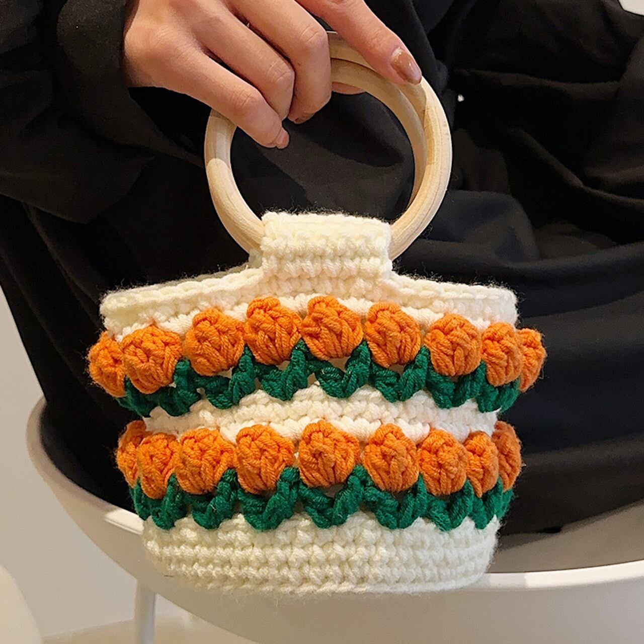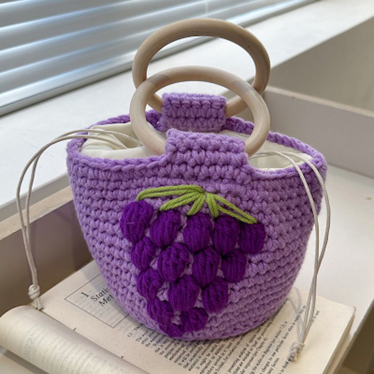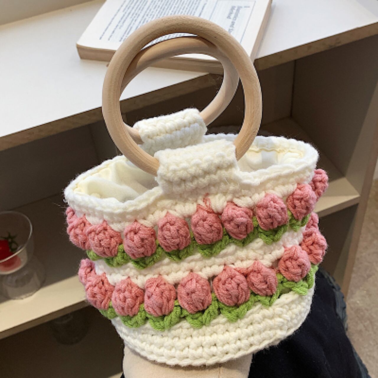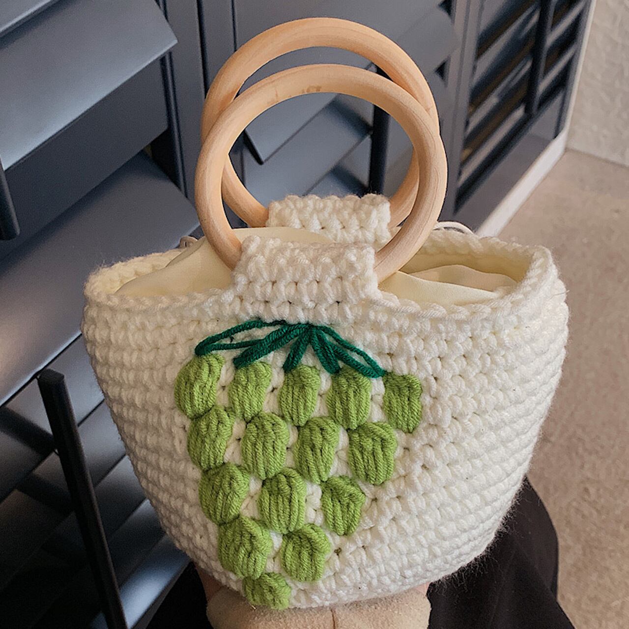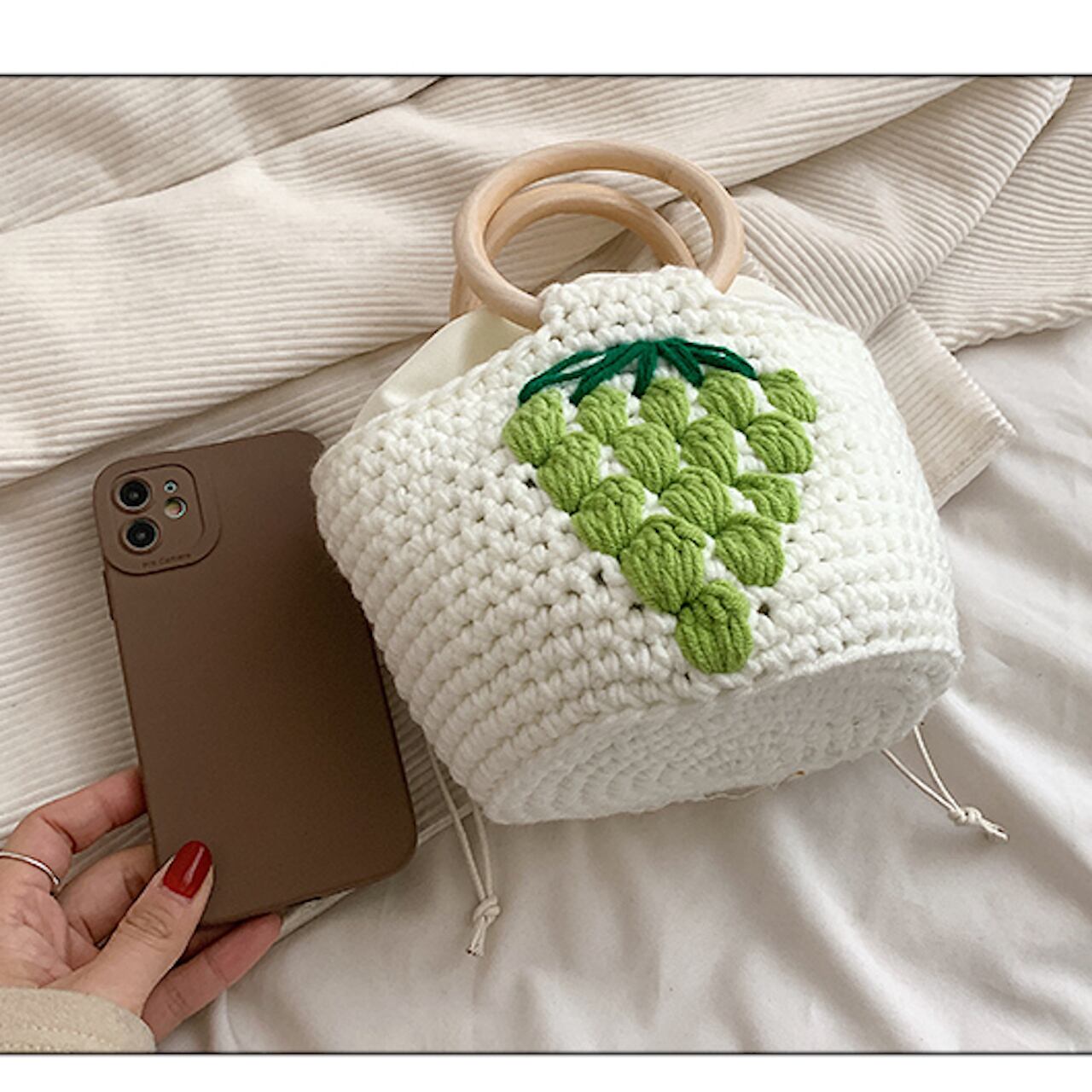 【送料無料】ハンドバッグ 4色展開 フルーツ フラワーモチーフ スモールバッグ フェミニン かわいい 20代 巾着 ナチュラル ピンク オレンジ ホワイト パープル お出かけ デート 夏