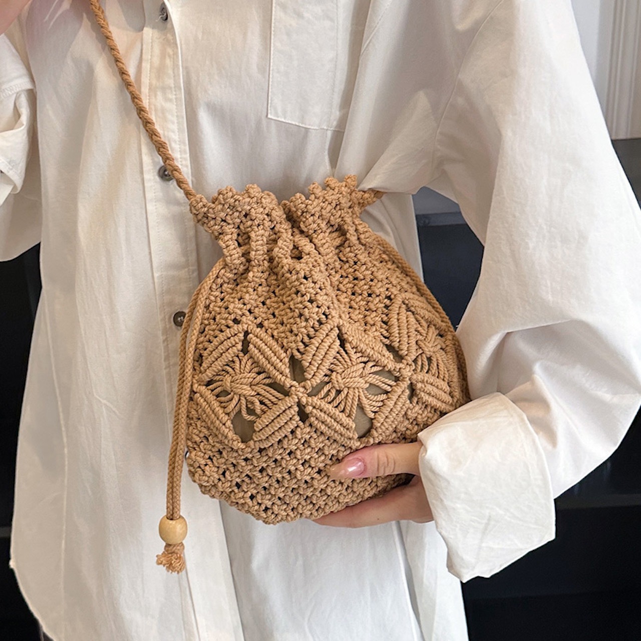 【送料無料】ショルダーバッグ ホワイト カーキ 肩掛け 斜め掛け 無地 シンプル カジュアルコーデ ナチュラル 巾着 大人かわいい 夏 デート