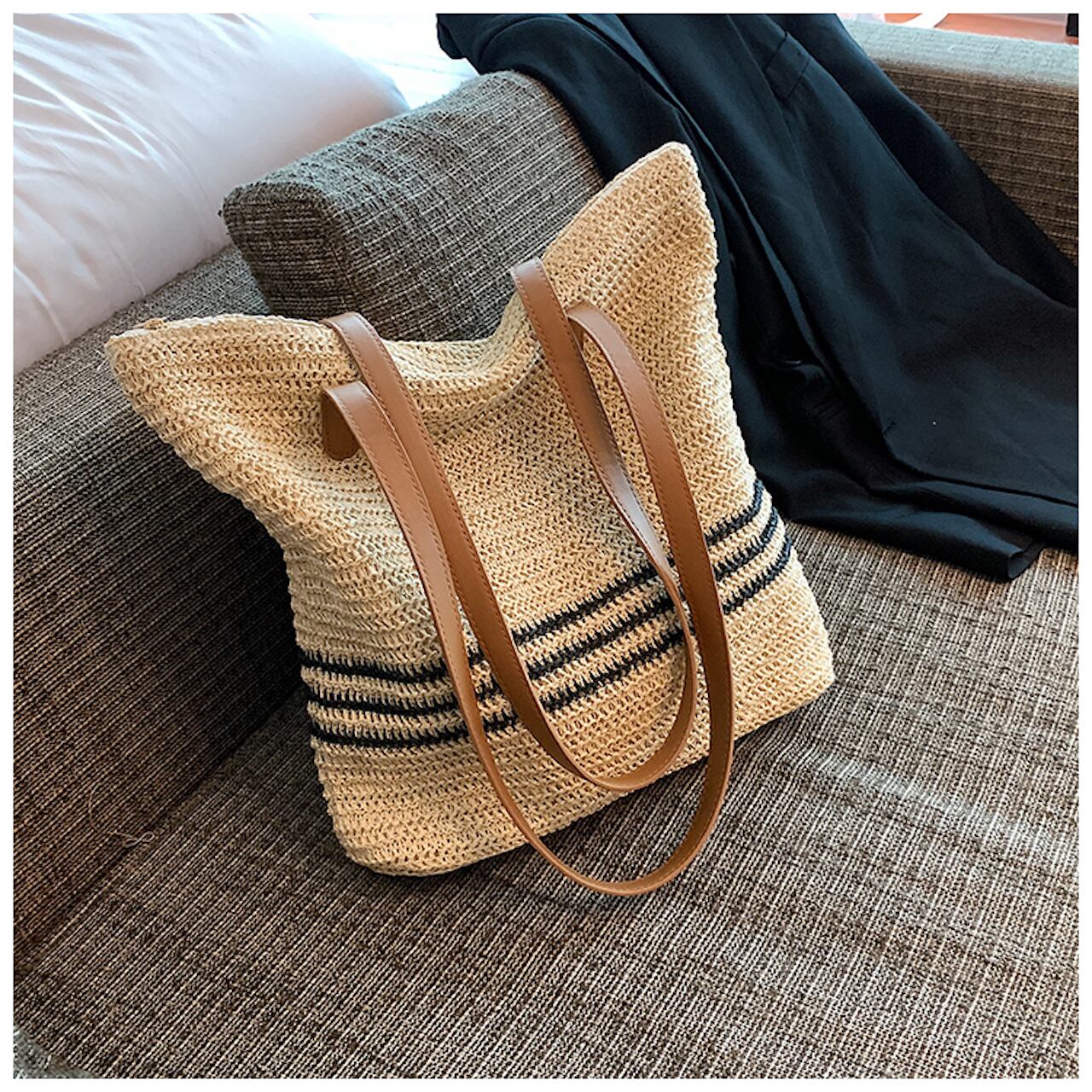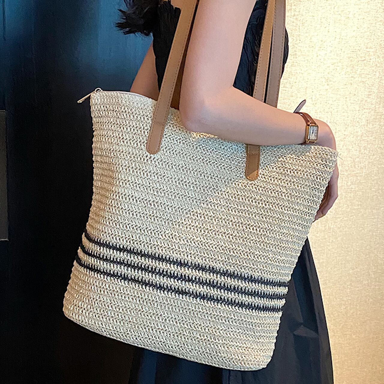【送料無料】トートバッグ 2色展開 ボーダー 大容量 20代 30代 通勤 通学 カレッジコーデ ナチュラル A4 大人女子 デート お出かけ 夏