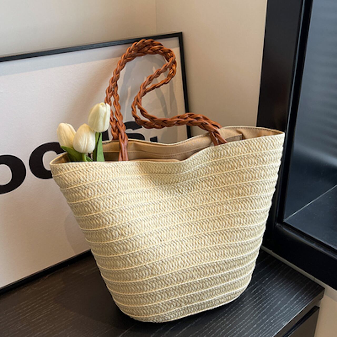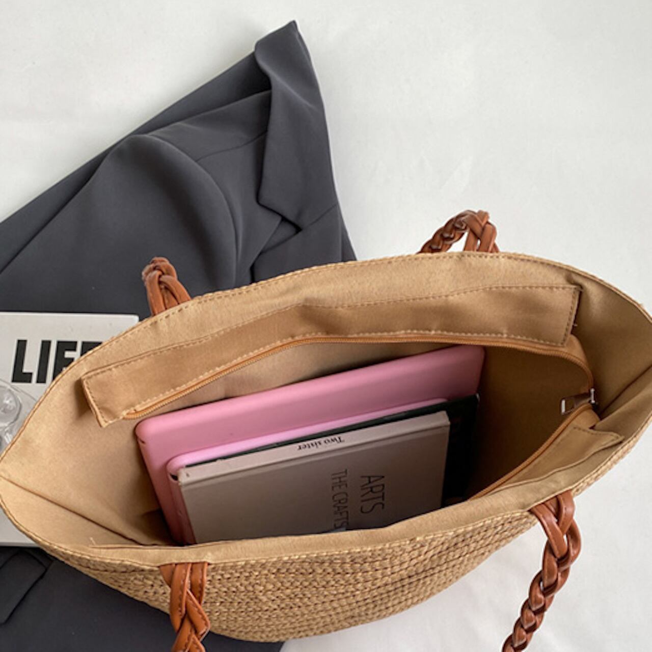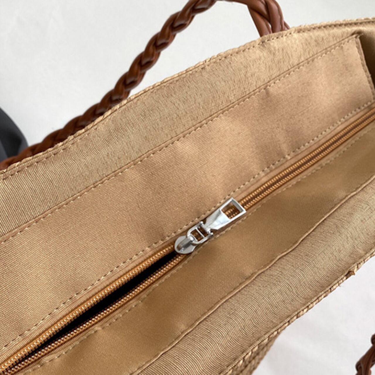 【送料無料】トートバッグ 3色展開 ベージュ カーキ グリーン ナチュラル カジュアル シンプル 上品 大人かわいい 20代 30代 通勤 通学 無地 夏 お出かけ デート 編み込み
