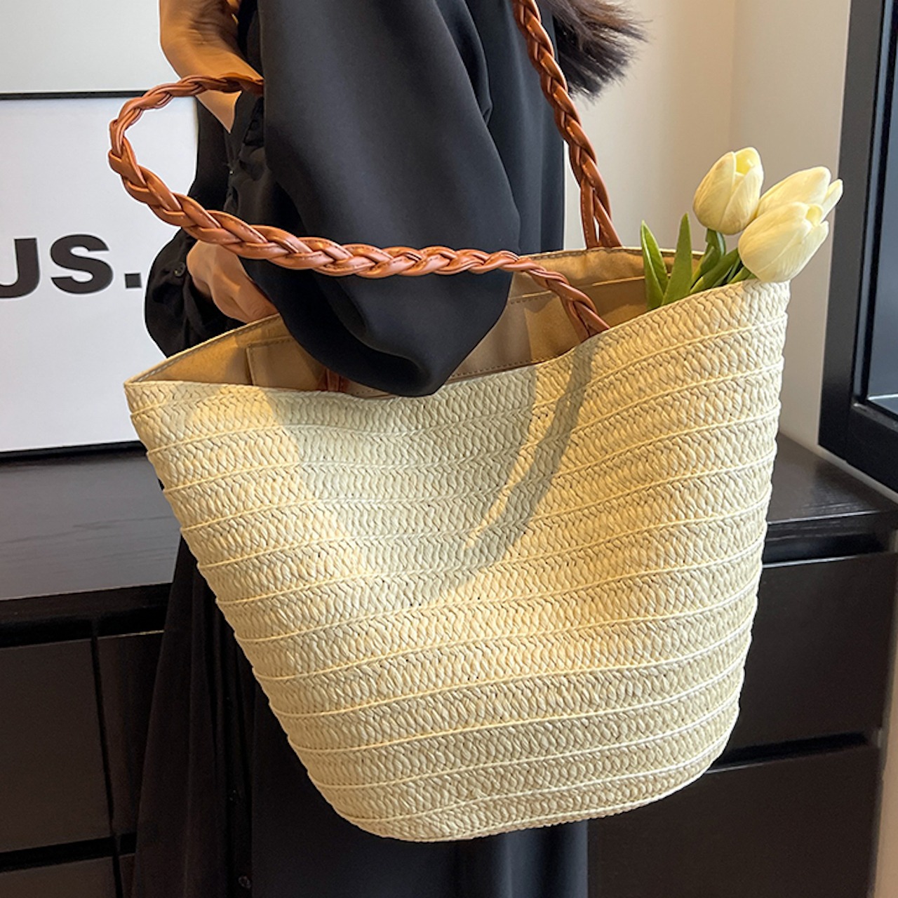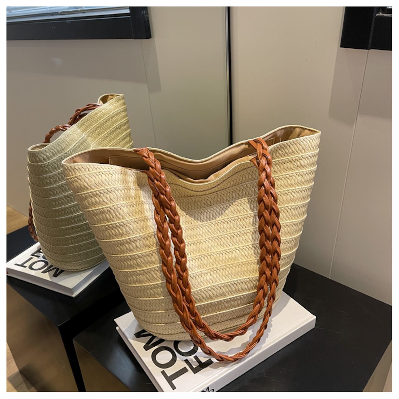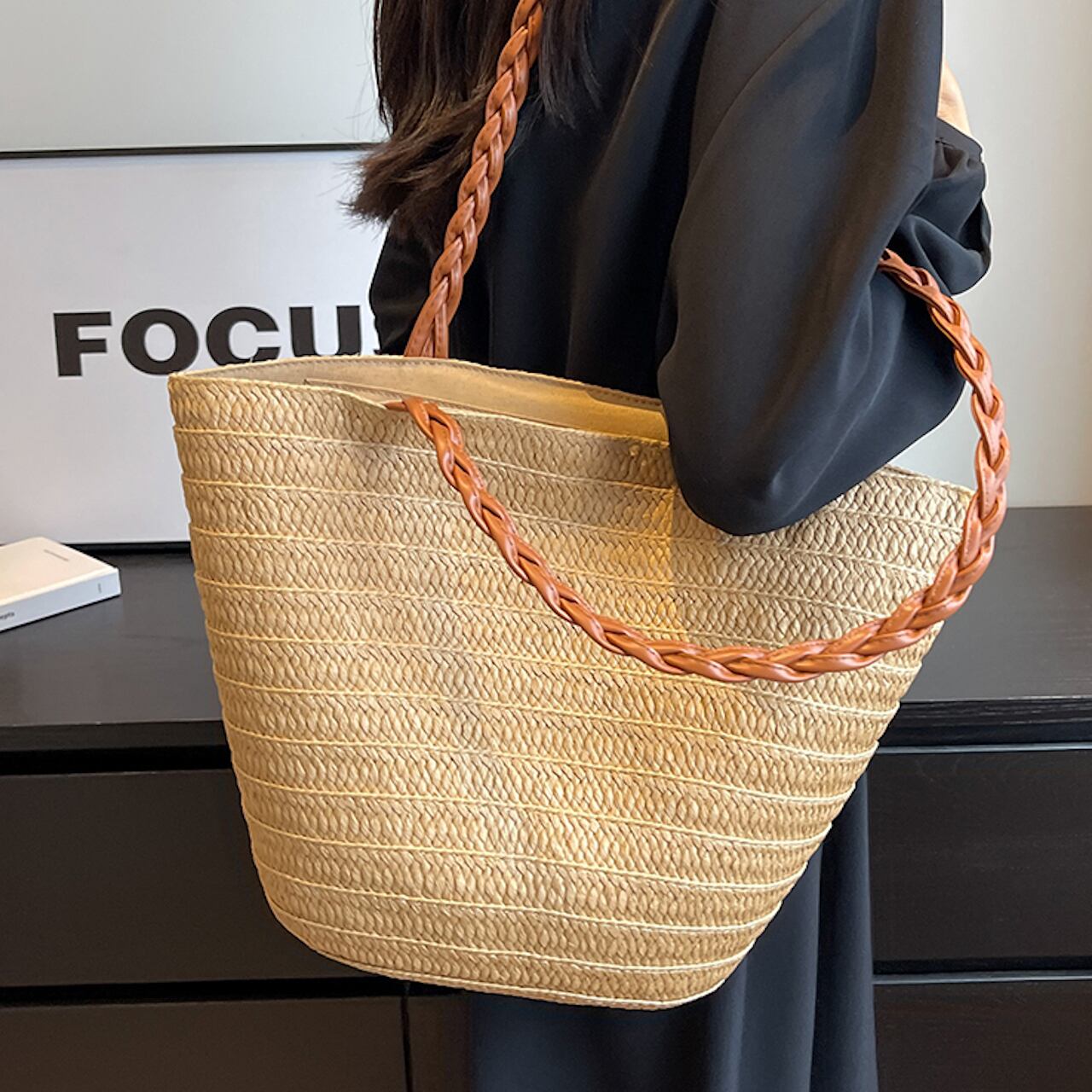 【送料無料】トートバッグ 3色展開 ベージュ カーキ グリーン ナチュラル カジュアル シンプル 上品 大人かわいい 20代 30代 通勤 通学 無地 夏 お出かけ デート 編み込み