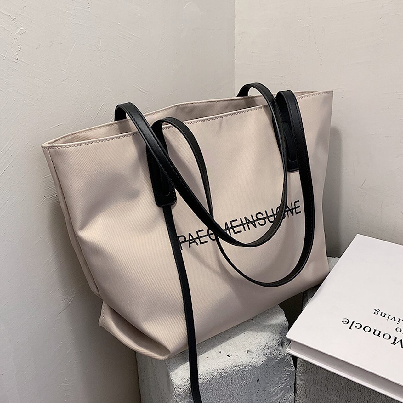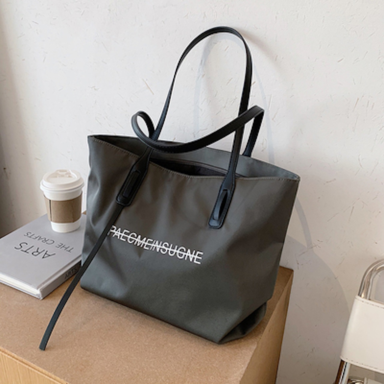 【送料無料】トートバッグ 4色展開 オフホワイト ブラック カーキ ダークグリーン 大容量 ロゴ シンプル 通学 通勤 10代 20代 カジュアル カレッジコーデ