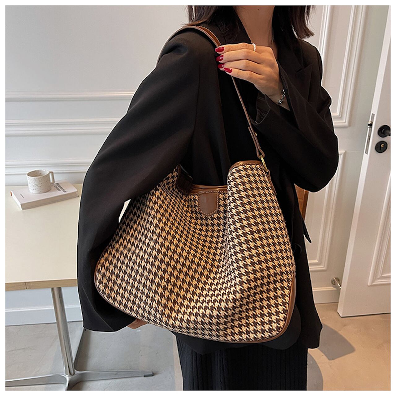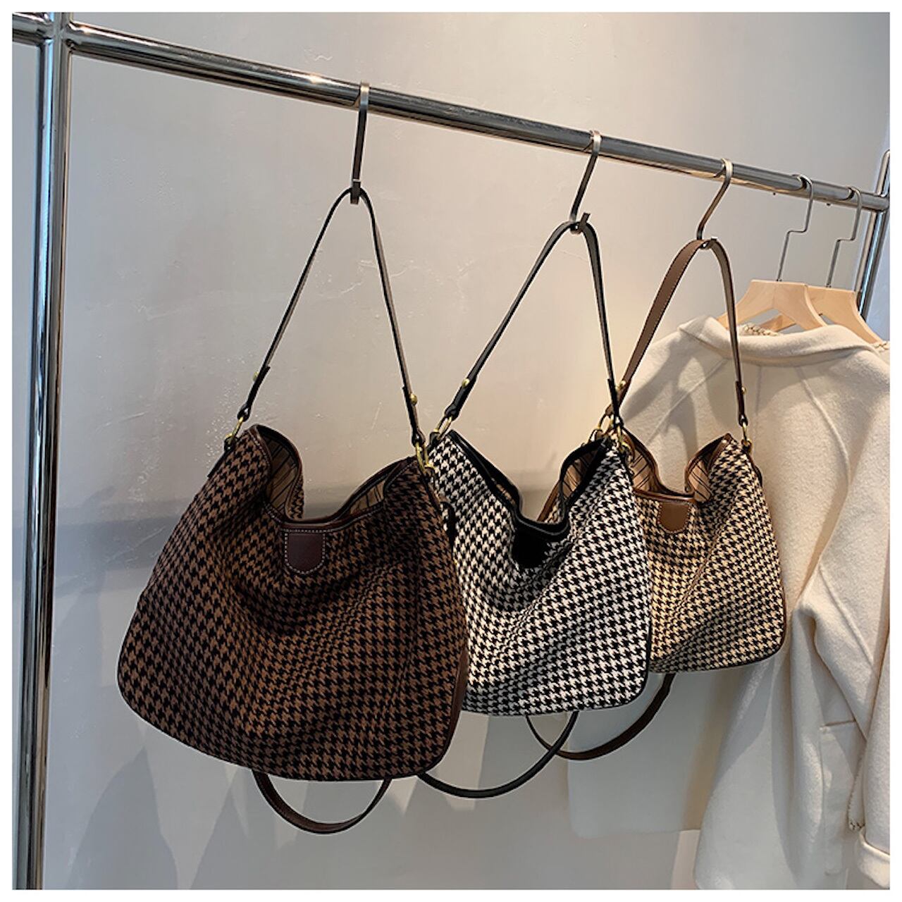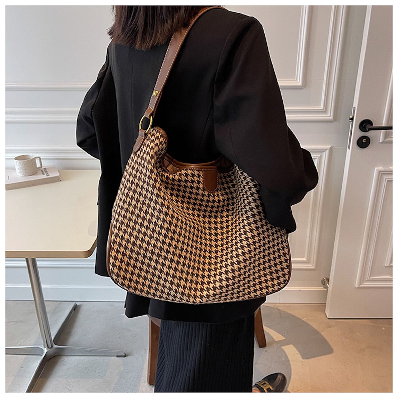 【送料無料】トートバッグ ショルダーバッグ 2way 3色展開 ブラック コーヒー カーキ チェック 大容量 チェック柄 大人かわいい 通勤 通学 秋