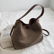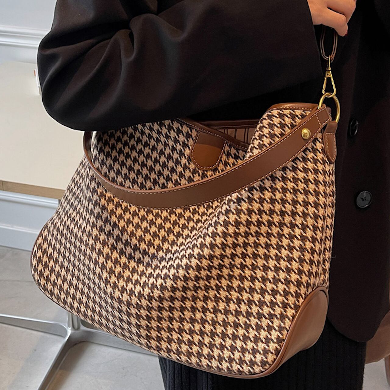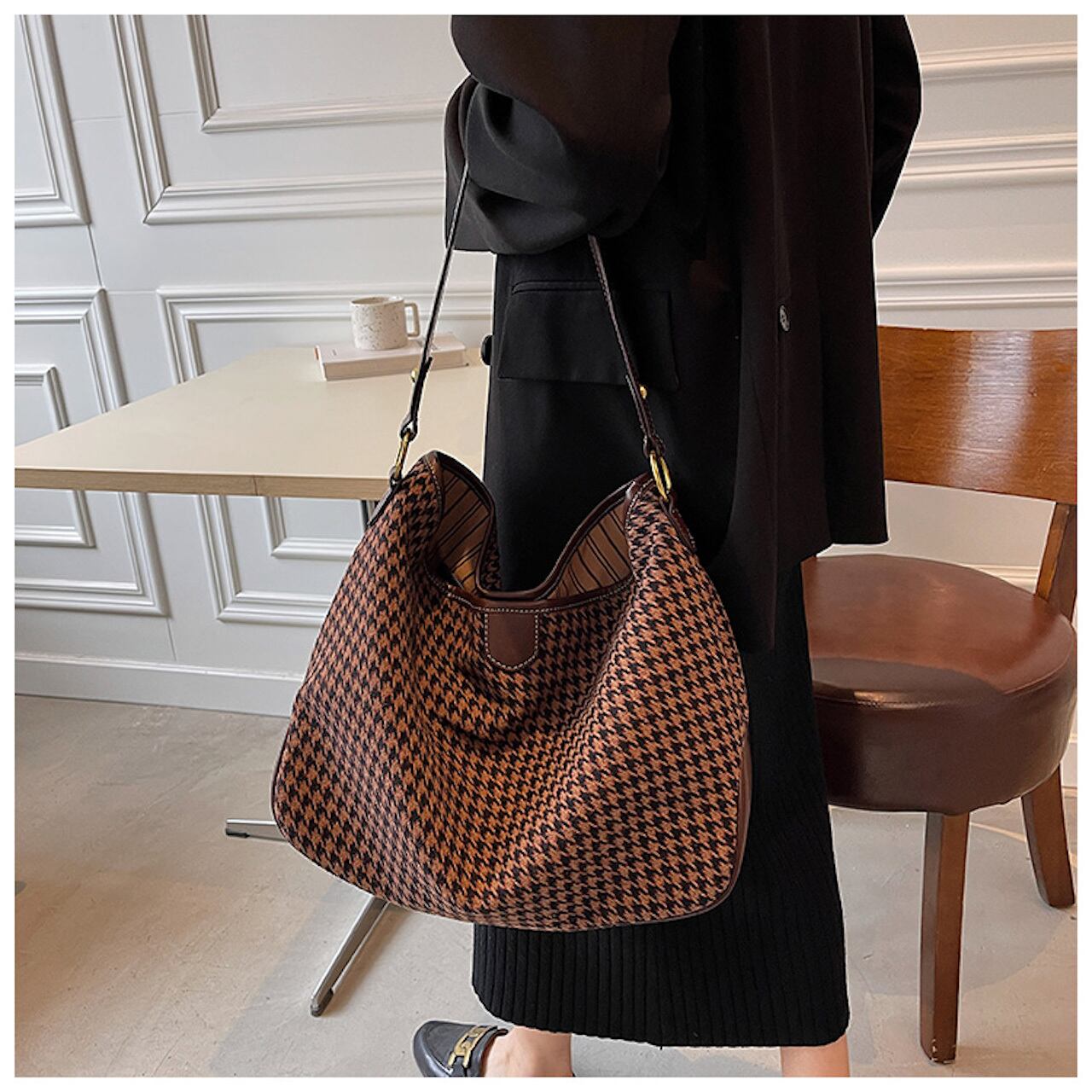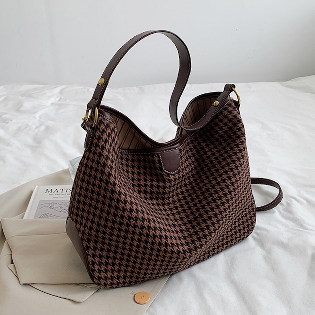 【送料無料】トートバッグ ショルダーバッグ 2way 3色展開 ブラック コーヒー カーキ チェック 大容量 チェック柄 大人かわいい 通勤 通学 秋