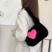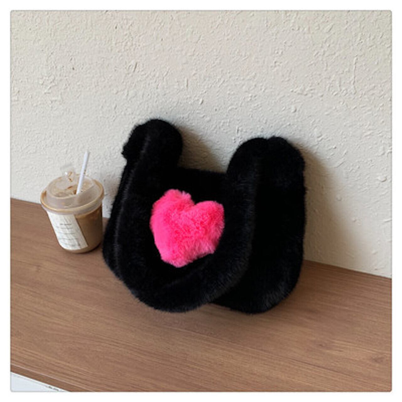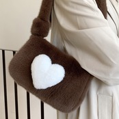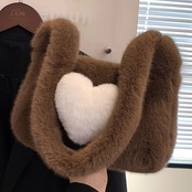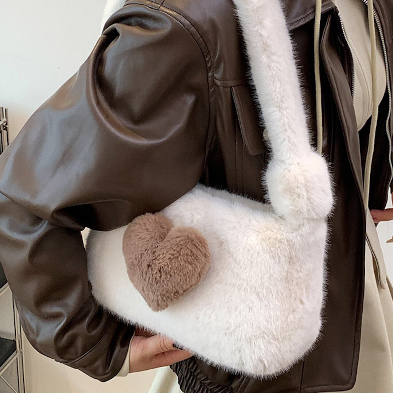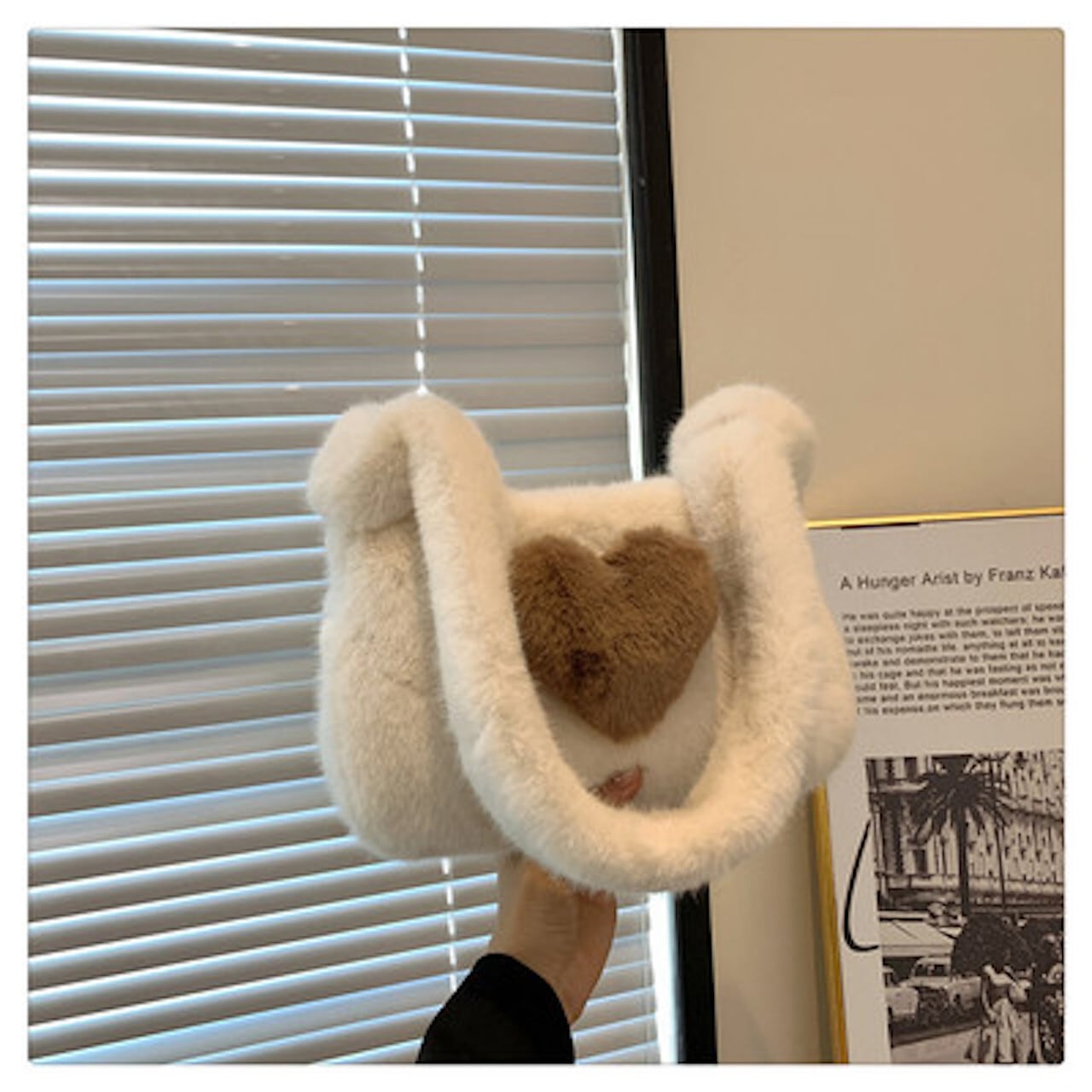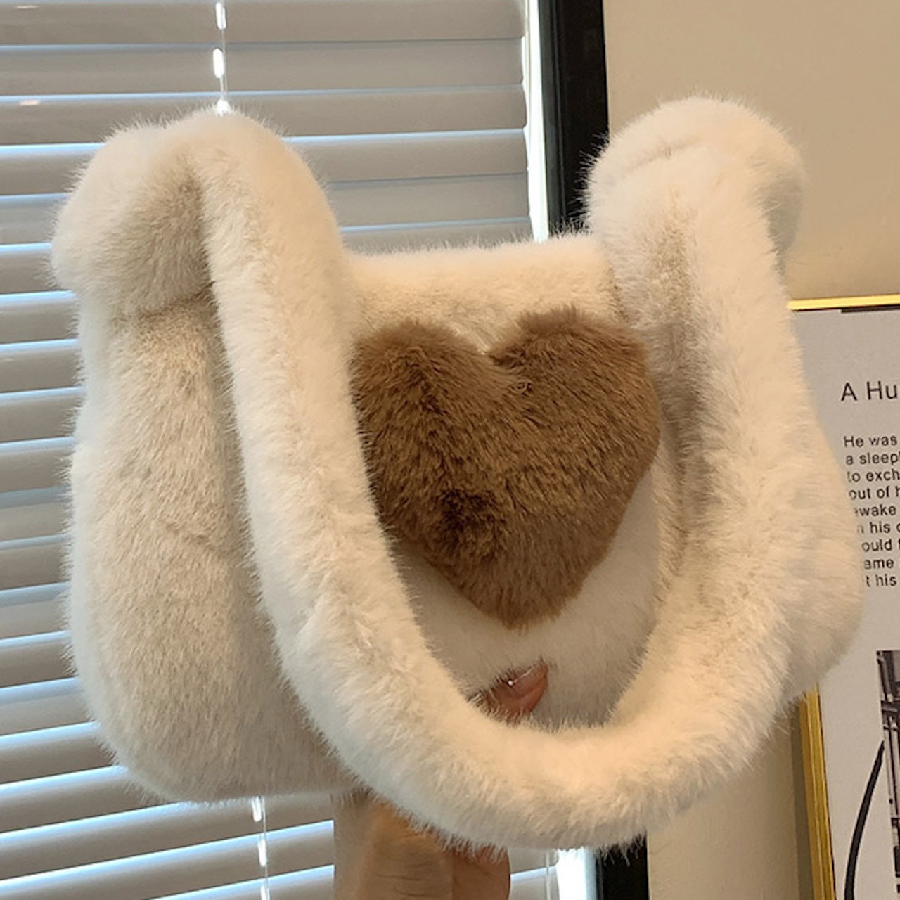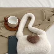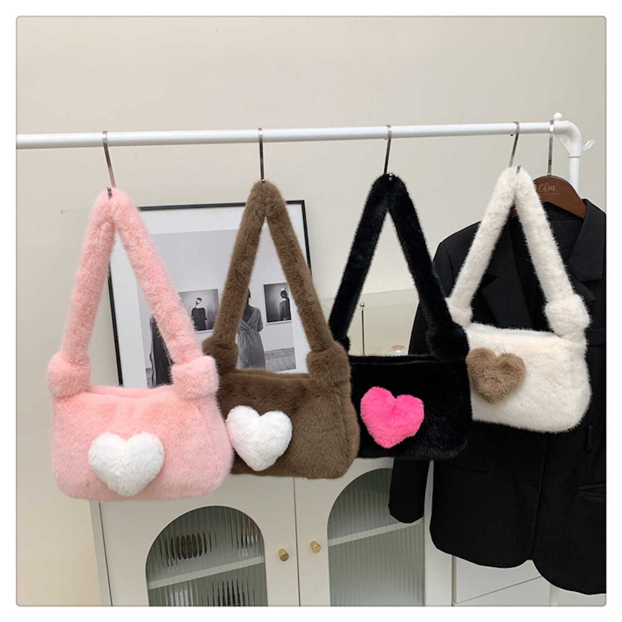 【送料無料】ハンドバッグ ショルダーバッグ 4色展開 もこもこ もふもふ ハートモチーフ フェミニン ガーリー 10代 20代 かわいい デート 秋冬