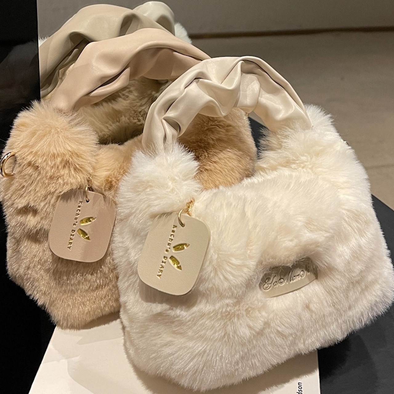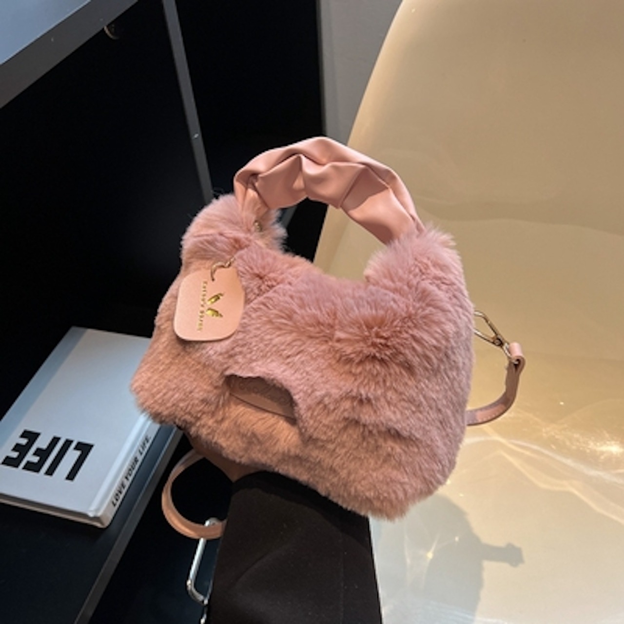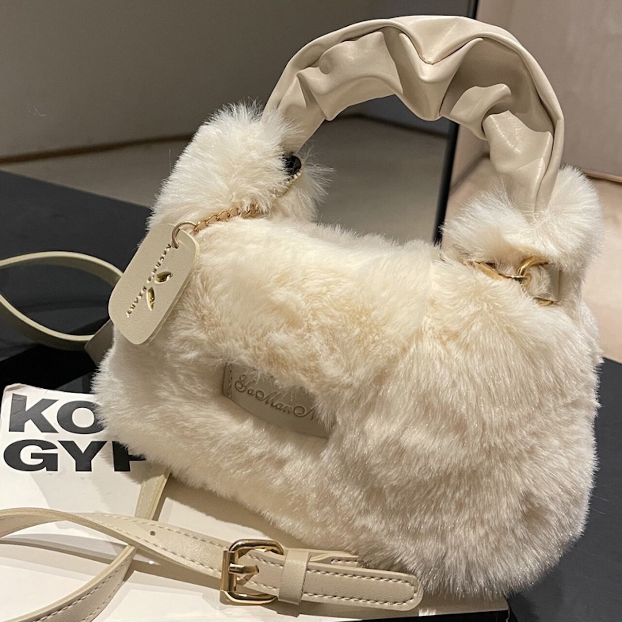 【送料無料】ショルダーバッグ ハンドバッグ 4色展開 もこもこ もふもふ 10代 20代 フェミニン ガーリー ミニバッグ 2way 取り外し可能ストラップ デート 女子会 秋冬
