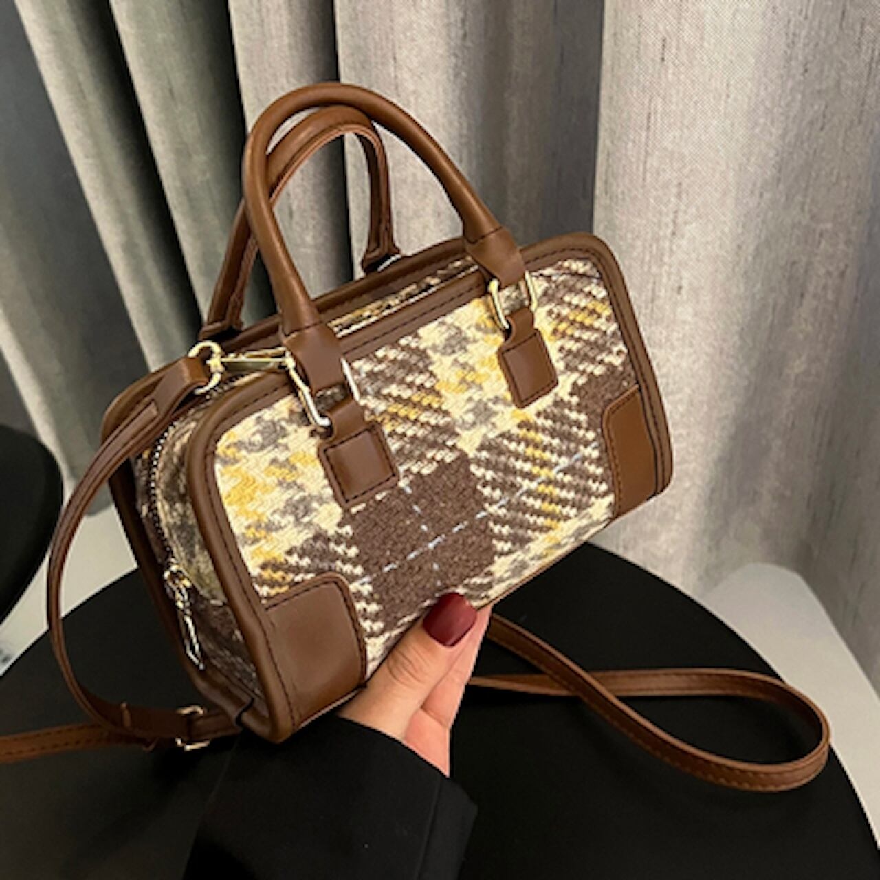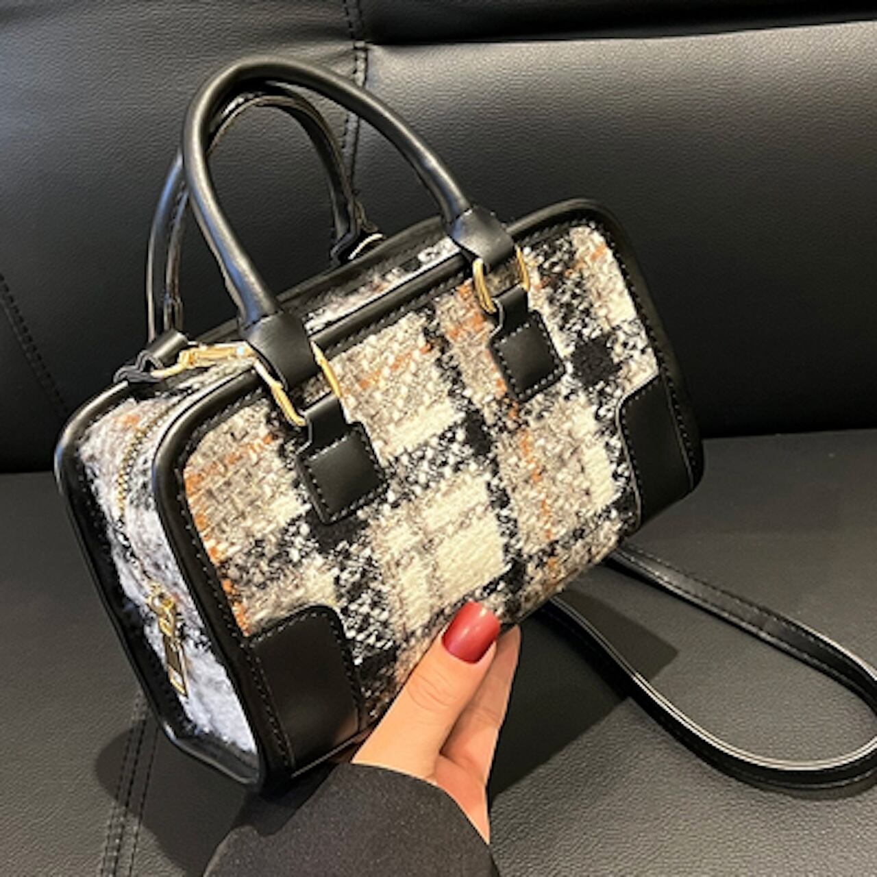 【送料無料】ハンドバッグ ショルダーバッグ 4色展開 チェック 秋冬 ガーリー フェミニン デート おでかけ 20代 30代 2WAY 取り外し可能ストラップ おしゃれ