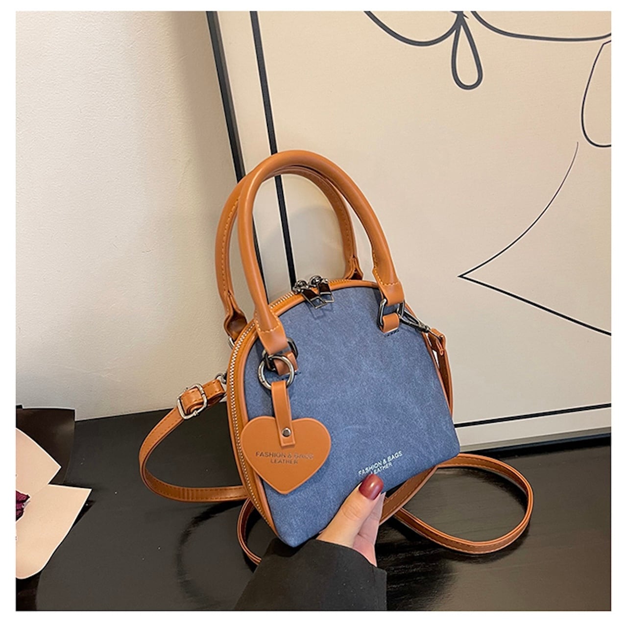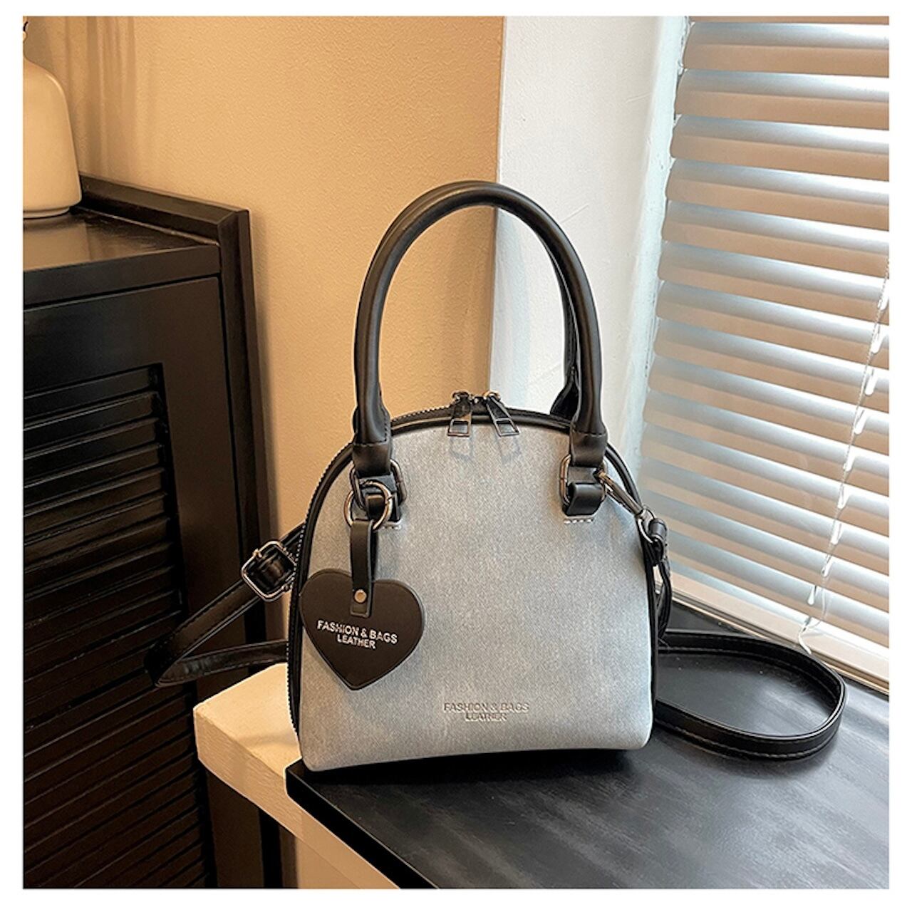 【送料無料】ショルダーバッグ ハンドバッグ 2way 4色展開 ダークカーキ ネイビーブルー グレー ライトブルー 取り外し可能ストラップ 20代 ハート ガーリー デート おでかけ 秋冬