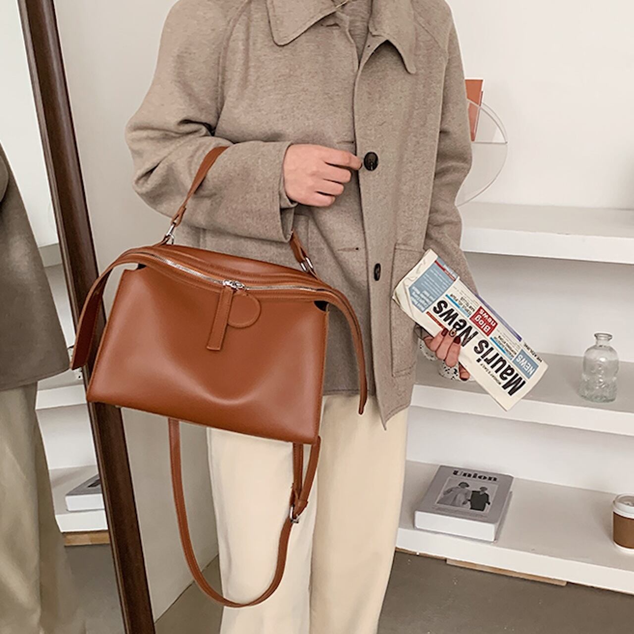【送料無料】ショルダーバッグ ハンドバッグ 4色展開 2way ブラック ブラウン コーヒー オフホワイト シック PU 無地 20代 30代 きれいめ デート 通勤 通学