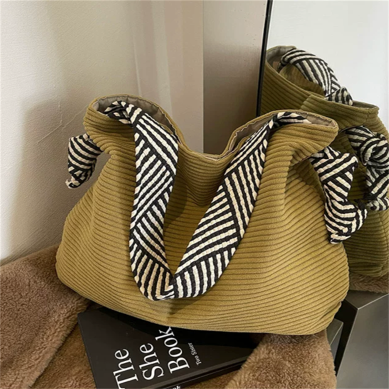 バイカラーの持ち手がアイキャッチなトートバッグです