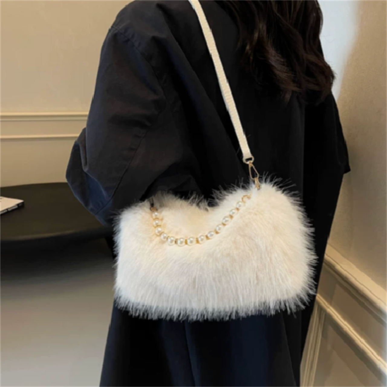 【送料無料】 ショルダーバッグ 5色 小さめ コンパクト ストラップ 斜め掛け 肩掛け ふわふわ ファー ファスナー エレガント 可愛い 大人可愛い きれいめ シンプル カジュアル シック コンサバ 華やか 大人 上品 おしゃれ お洒落 主役級 こなれ感 高見え 高級感 無地 20代 30代 40代 レディース 女性用 パール装飾 冬 普段使い ファッション 定番 プチプラ 垢抜け アイボリー ブラック カーキ ブラウン ピンク 大人カラー ニュアンスカラー お出かけ お買い物 デート 女子会 二次会