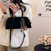 【送料無料】 ショルダーバッグ 4色 小さめ コンパクト マチ付き ストラップ 斜め掛け 肩掛け チャーム スエード エレガント 可愛い 大人可愛い きれいめ シンプル カジュアル シック コンサバ 華やか 大人 上品 おしゃれ お洒落 レトロ 主役級 こなれ感 高見え 高級感 大人フェミニン ヴィンテージ感 無地 30代 40代 レディース 女性用 秋 冬 普段使い ファッション 定番 プチプラ 垢抜け お出かけ お買い物 デート 女子会 アウトドア 通勤・通学 ブラック カーキ ブラウン くすみカラー