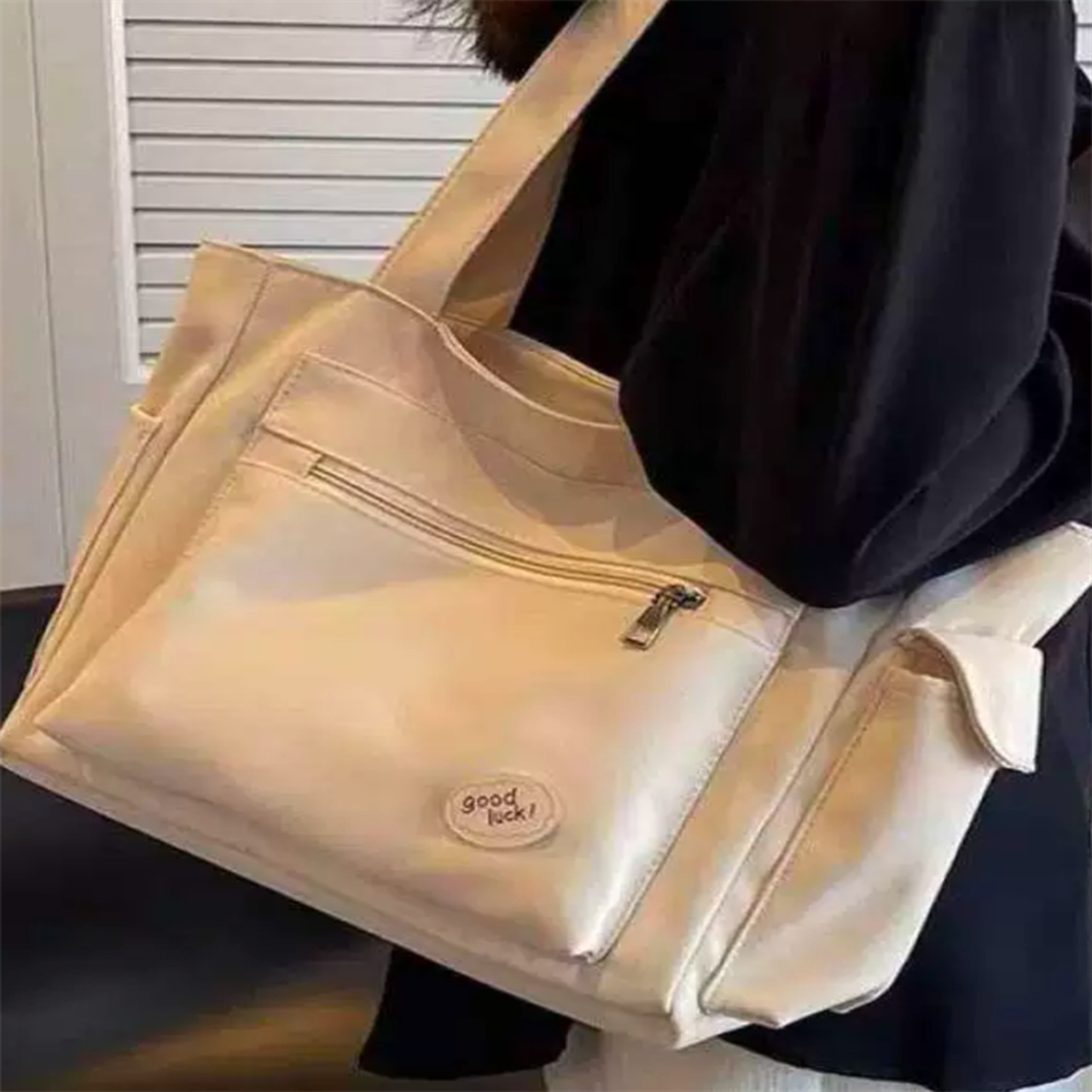 【送料無料】 トートバッグ 4色 大きめ 持ち手 外ポケット ファスナー 可愛い 大人可愛い シンプル カジュアル コンサバ おしゃれ こなれ感 無地 30代 40代 レディース 女性用 オールシーズン シーズンレス 普段使い ファッション 定番 プチプラ お出かけ お買い物 アウトドア 通勤・通学 アイボリー ブラック カーキ ニュアンスカラー